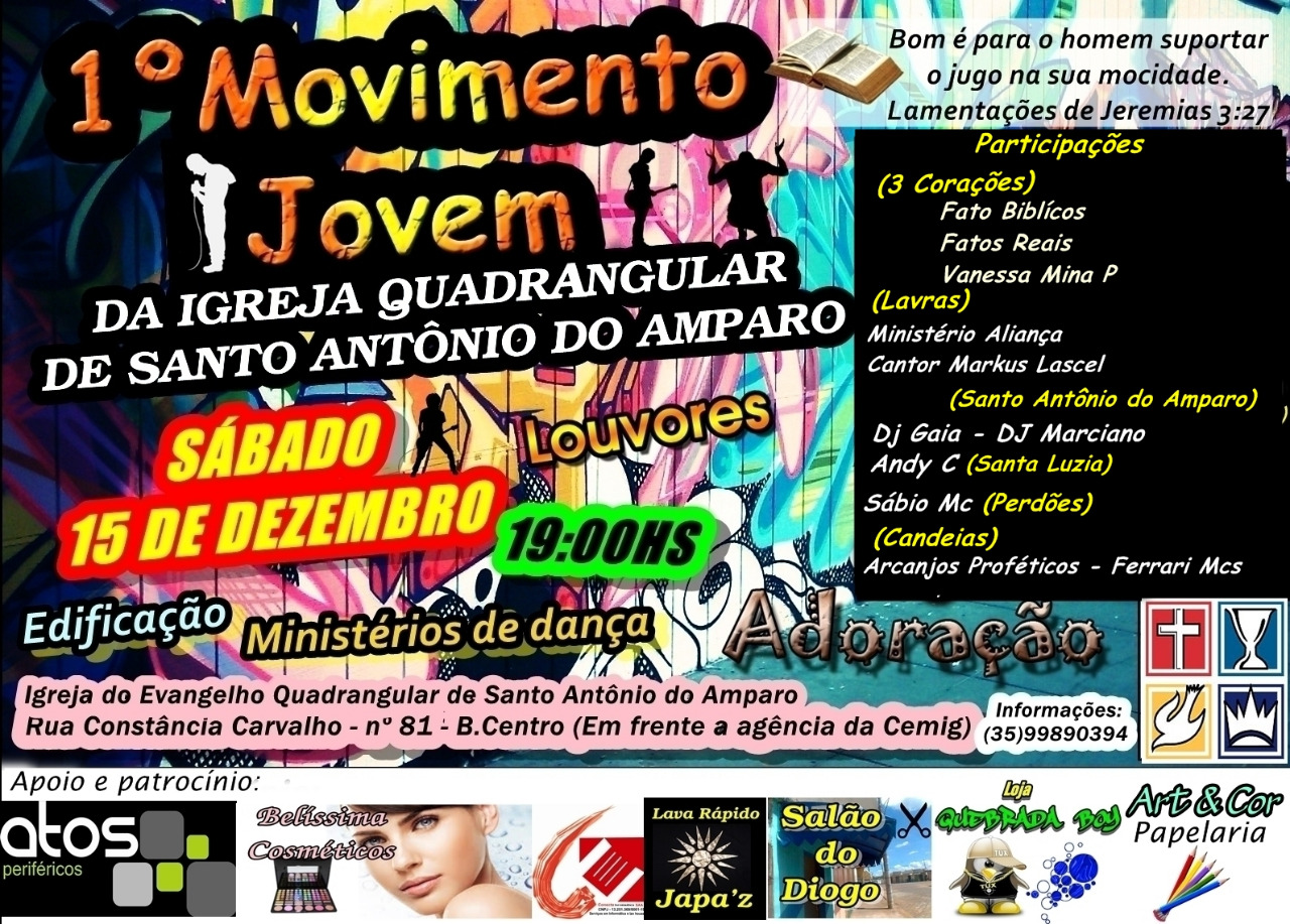 Uma noite de louvor e adoração com a presença de vários levitas locais, grupos de rap gospel e ministérios de dança.Maiores informações: 35 99890394